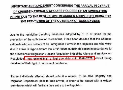 疫情發(fā)生后,很多塞浦路斯的永久居民不能如期進(jìn)行兩年一次的登陸,經(jīng)中國(guó)駐塞浦路斯使館的多次協(xié)調(diào),塞浦路斯移民局出臺(tái)如下延期登陸解釋: