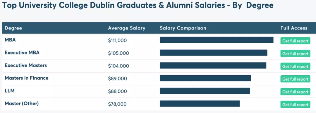 圖為UCD研究生畢業(yè)后最能“賺錢”的幾個(gè)行業(yè),其中MBA課程(工商管理碩士)的平均工資能夠達(dá)到11.1萬(wàn)美元(約71萬(wàn)人民幣/年)。