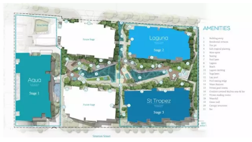 Laguna的設計理念完美融合了豪華生活與都市的繁華,是內城區安居的新典范。兩層階梯式的瀑布、綠洲景觀花園還有瀉湖泳池環繞四周,眾多壯觀美景可盡情享受。