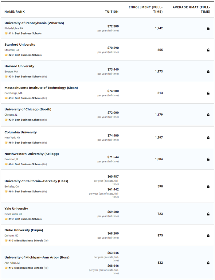 本以為哈佛會在2020年U.S.News全美最佳研究生商學院榜單中延續輝煌,意外的是被賓夕法尼亞大學沃頓商學院趕超。下面是TOP10具體排名: