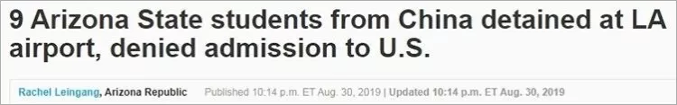 8月,9名中國留學生在洛杉磯機場被遣返