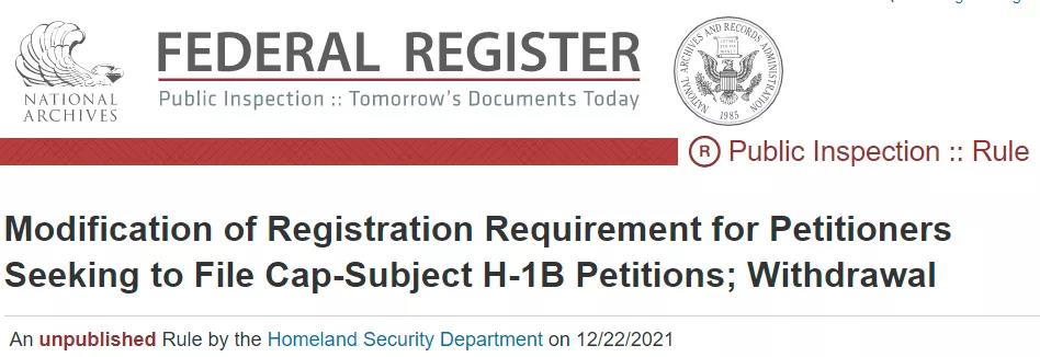 當(dāng)?shù)貢r(shí)間12月22日,美國(guó)移民局(USCIS)發(fā)布聲明:正式撤回特朗普政府于2021年1月8日所發(fā)布的“依據(jù)薪資水平對(duì)H-1B簽證申請(qǐng)人進(jìn)行抽簽的規(guī)則”。