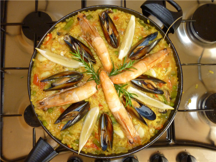 到西班牙餐館就餐,不妨點一些當地的特產,如海魚、海鮮、烤羊肉、烤羊排、烤羊腿、烤牛排、燒牛尾、海鮮飯等。當然,一定不要忘記在點主菜前點幾道地道的當地風味小吃:火腿、奶酪、香腸、土豆蛋餅、炸小魚、炸魷魚圈等。吃西班牙大餐時,當然少不了西班牙產的葡萄酒,如干紅葡萄酒、白葡萄酒、雪利酒、白蘭地及用水果釀制的餐后酒。